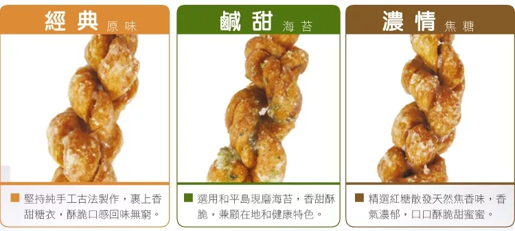 博客來e-coupon [口福麻花]口感香脆麻花3包入(海苔-2+原味-1)
